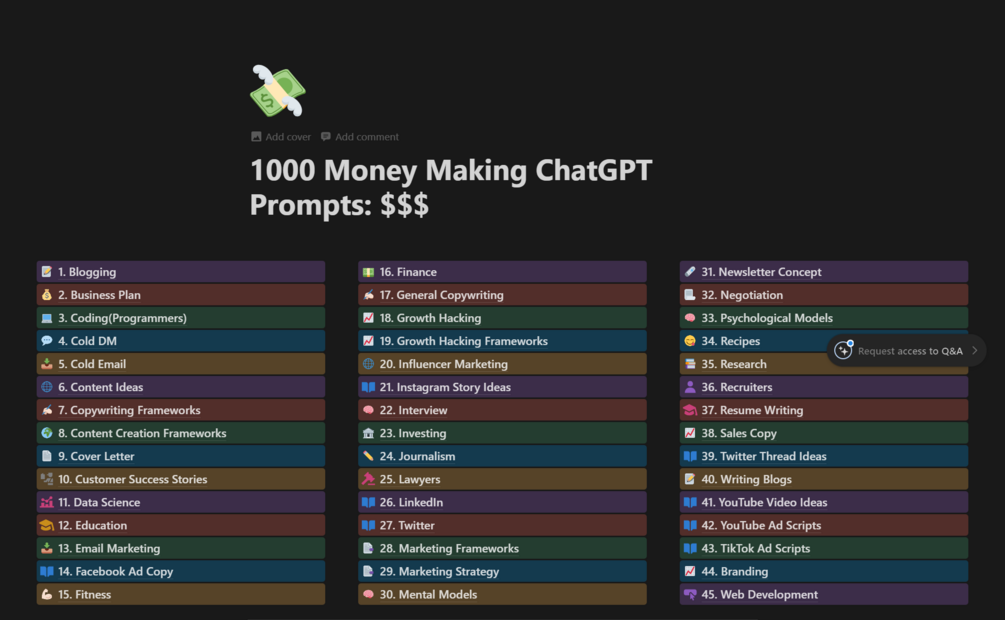 Make your first $1000 with these 1000 prompts for various tasks needed.